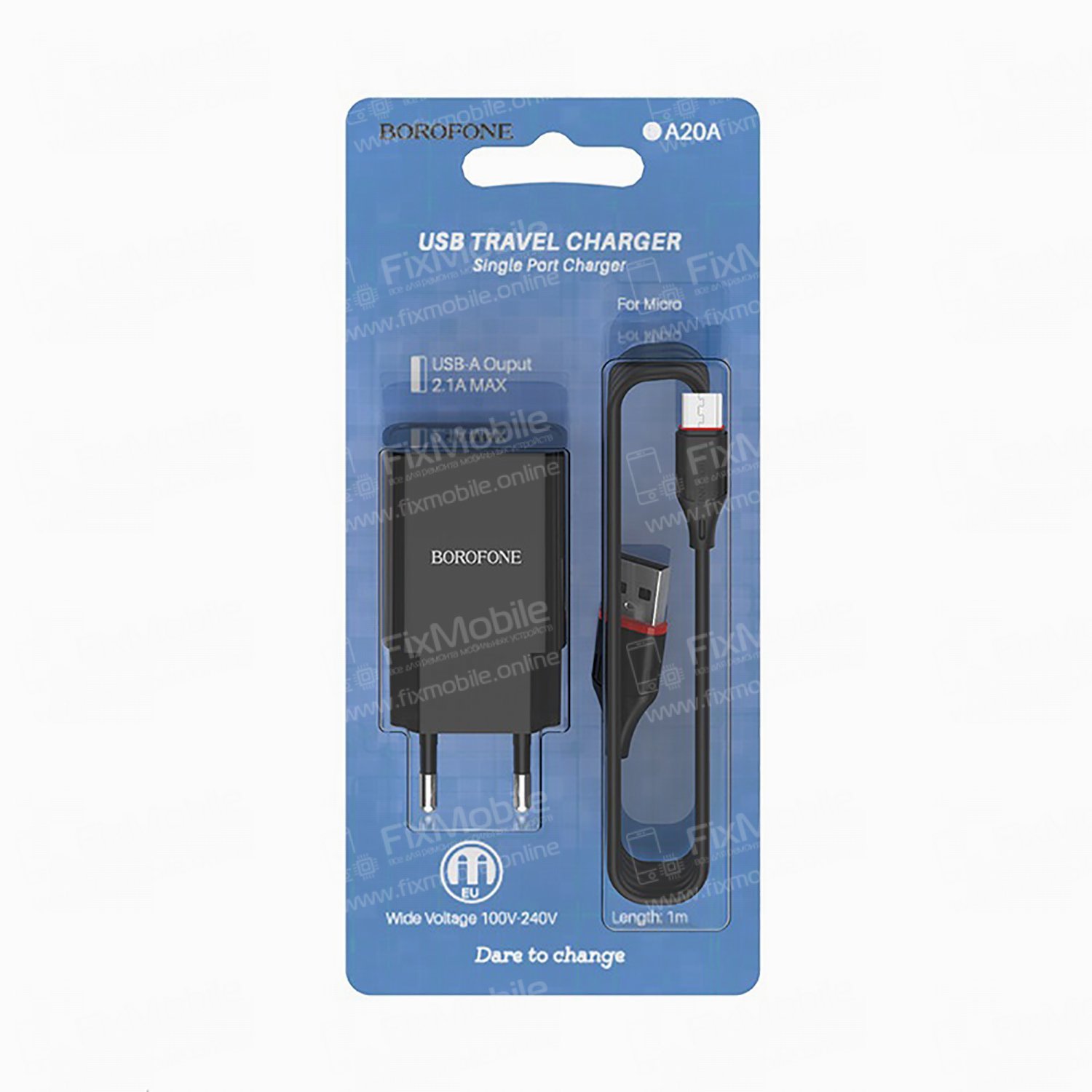 Сетевое зарядное устройство Borofone BA20A Sharp USB с кабелем micro-USB (черное)